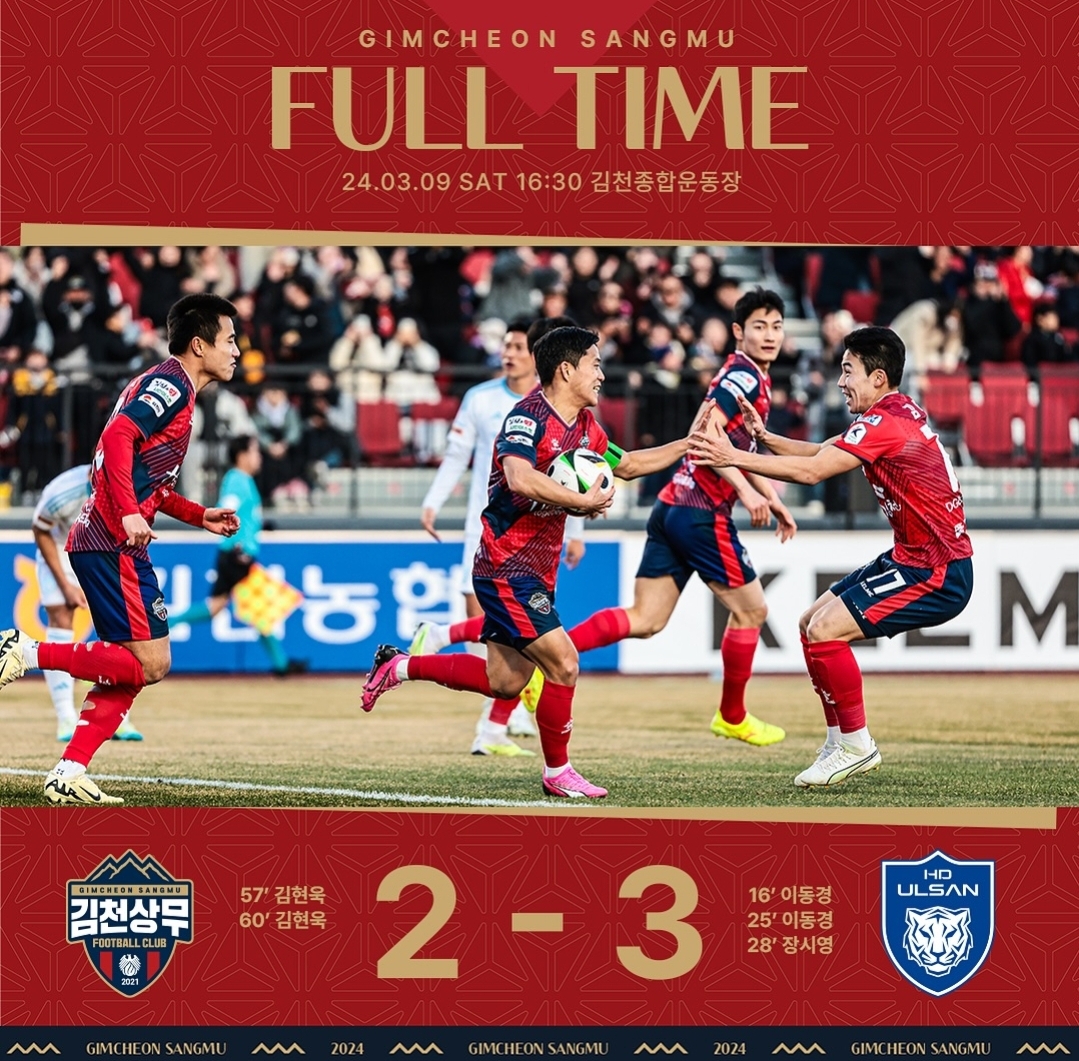 3. 김천 상무 vs 울산 HD (3/9, 16시30분, 김천 종합)
