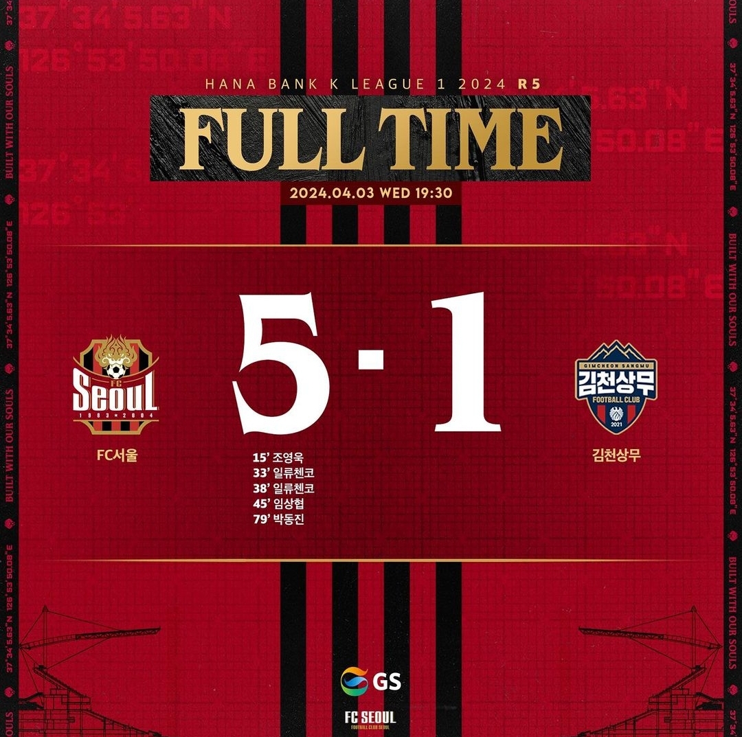 4. FC서울 vs 김천 상무 (4/3, 19시30분, 서울 월드컵)