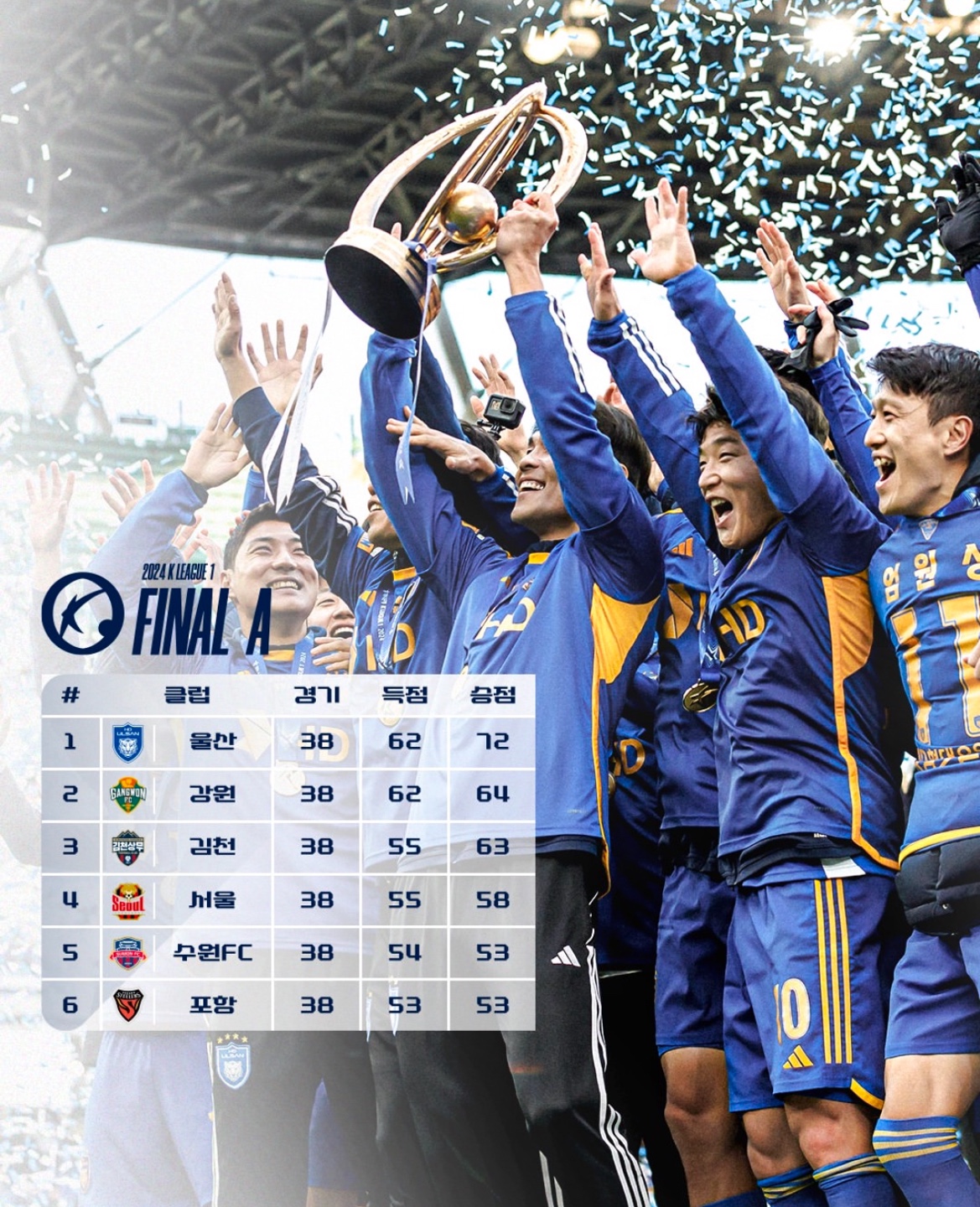 [2024 K리그 파이널 라운드] 울산 3연패, 인천 강등...전북, 대구 극적 생존